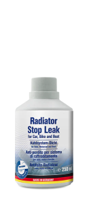 Radiator Stop Leak colmate les fuites de radiateurs, de convertisseurs de chaleur, de pompes à eau et de durites flexibles. Radiator Stop Leak est compatible avec toutes les marques d’antigel.